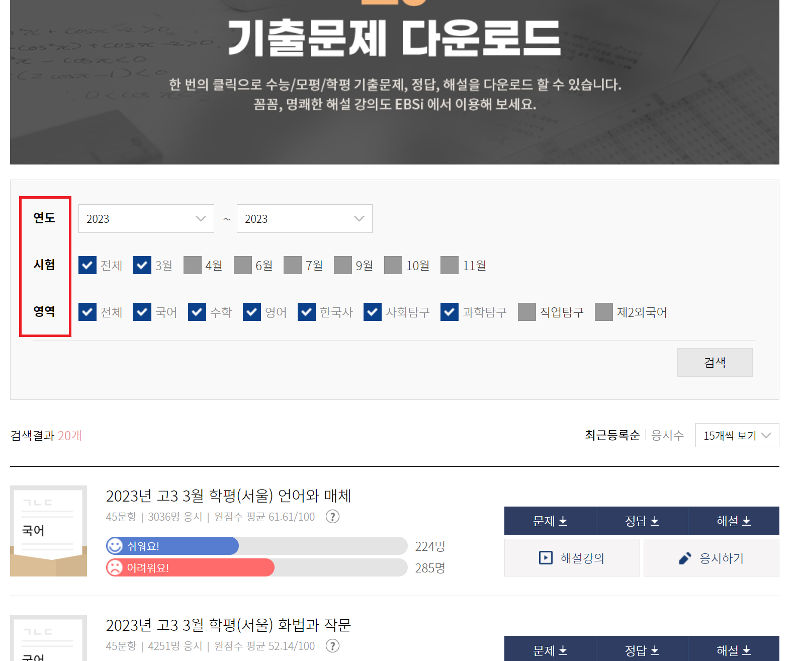 고1, 고2 모의고사 기출문제도 다운받을 수 있습니다.