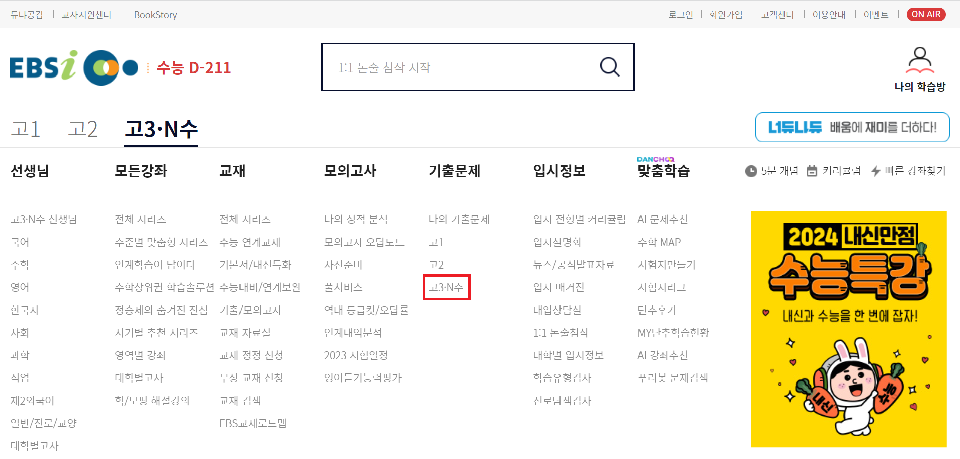 고3 수능/평가원 기출문제를 다운받으려면 고3/N수 를 클릭합니다.